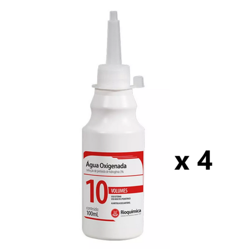 Água Oxigenada 10 Vol 3% Peróxido Rioquímica 100ml Kit C/ 4 unidades